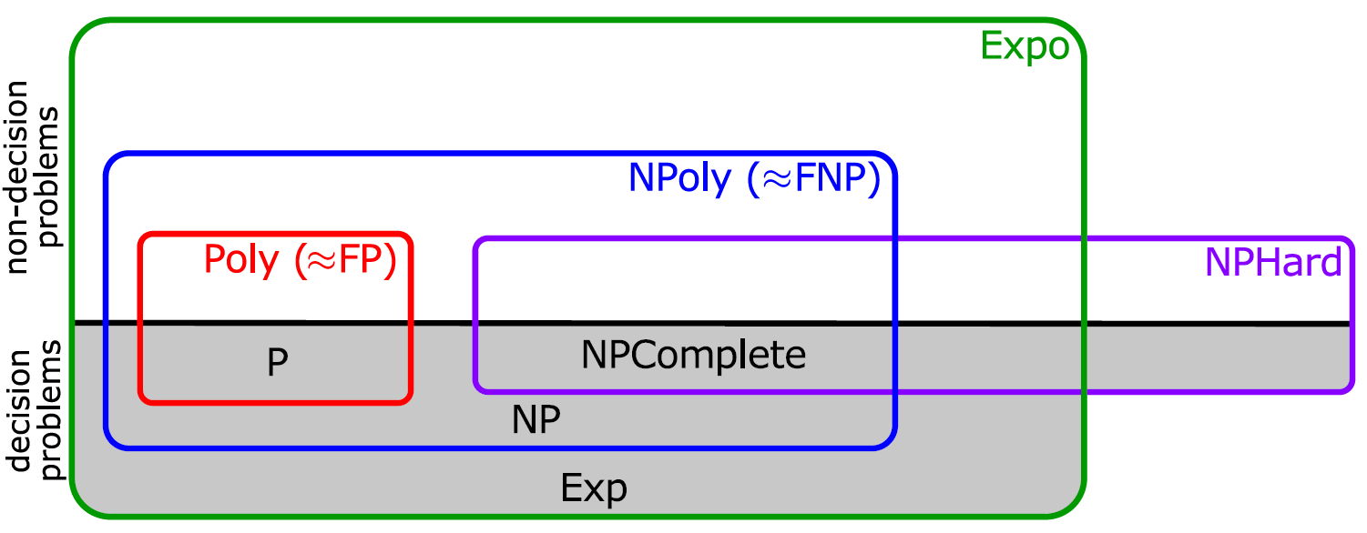 Key relationships: We know P \(\subseteq\) NP \(\subseteq\) Expo, but are these proper subsets? This is perhaps the most famous open question in computer science!