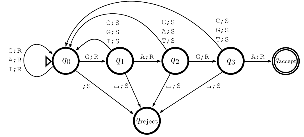 containsGAGA diagramState diagram for the containsGAGA Turing machine.