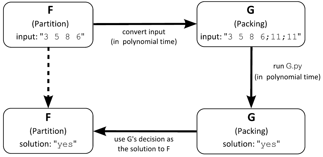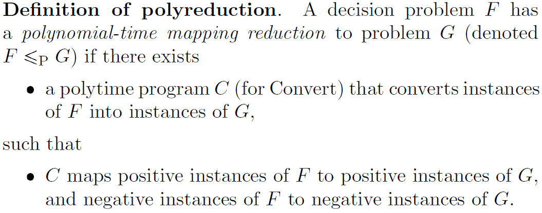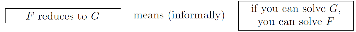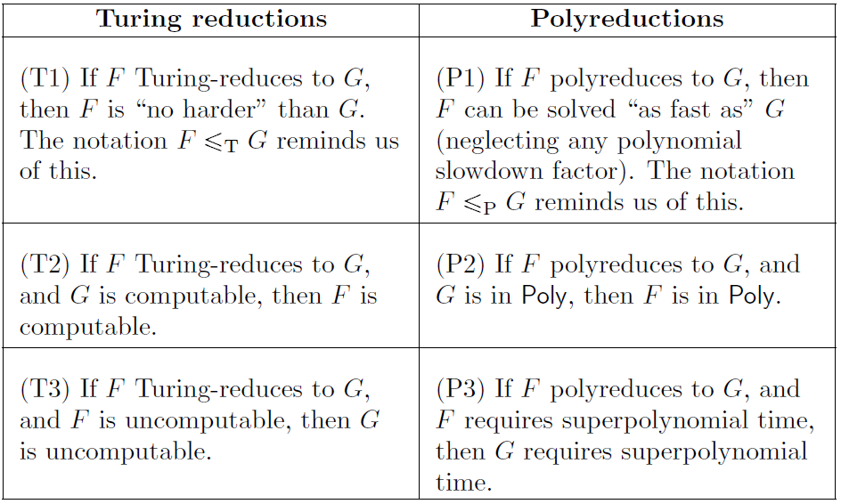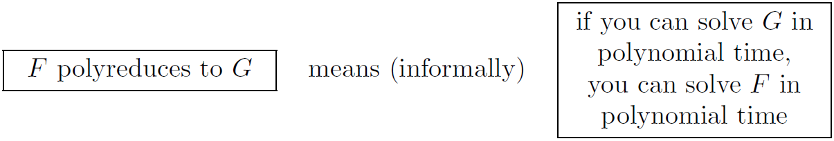 Polyreductions are stricter but reveal more: the constraints mean that \(F \leq_P G\) tells us that \(F\) is “no harder” than \(G\) in terms of computational complexity! Hooray, this is exactly what we need for NP-completeness!