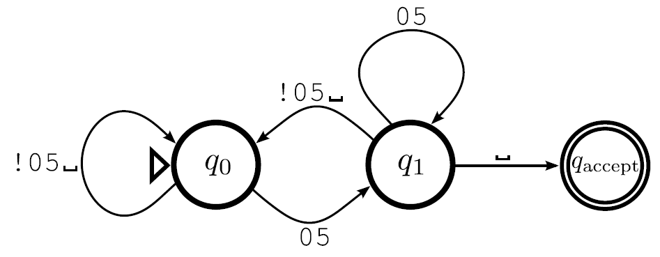 ('q0', 'A'): 'q1', ('q0', 'B'): 'q0',